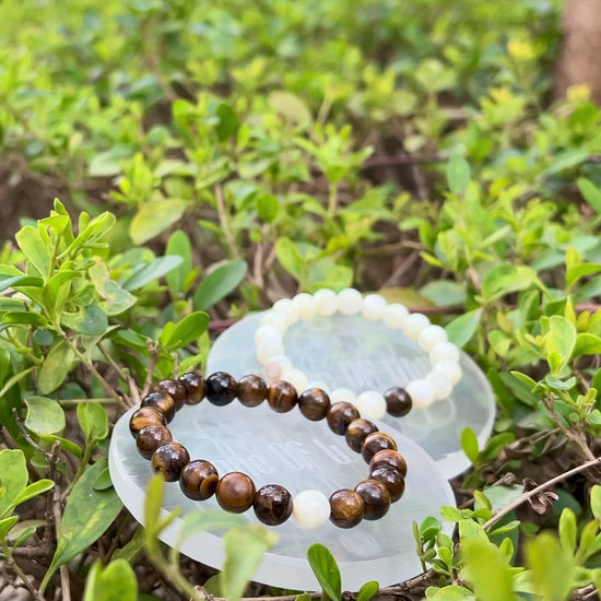 For Him - The Tiger Eye bracelet, accented with a single Mother of Pearl bead at its center, represents strength guided by calm. It carries grounding, courage, and confidence, while the Mother of Pearl at its core softens that power with patience, intuition, and emotional understanding.