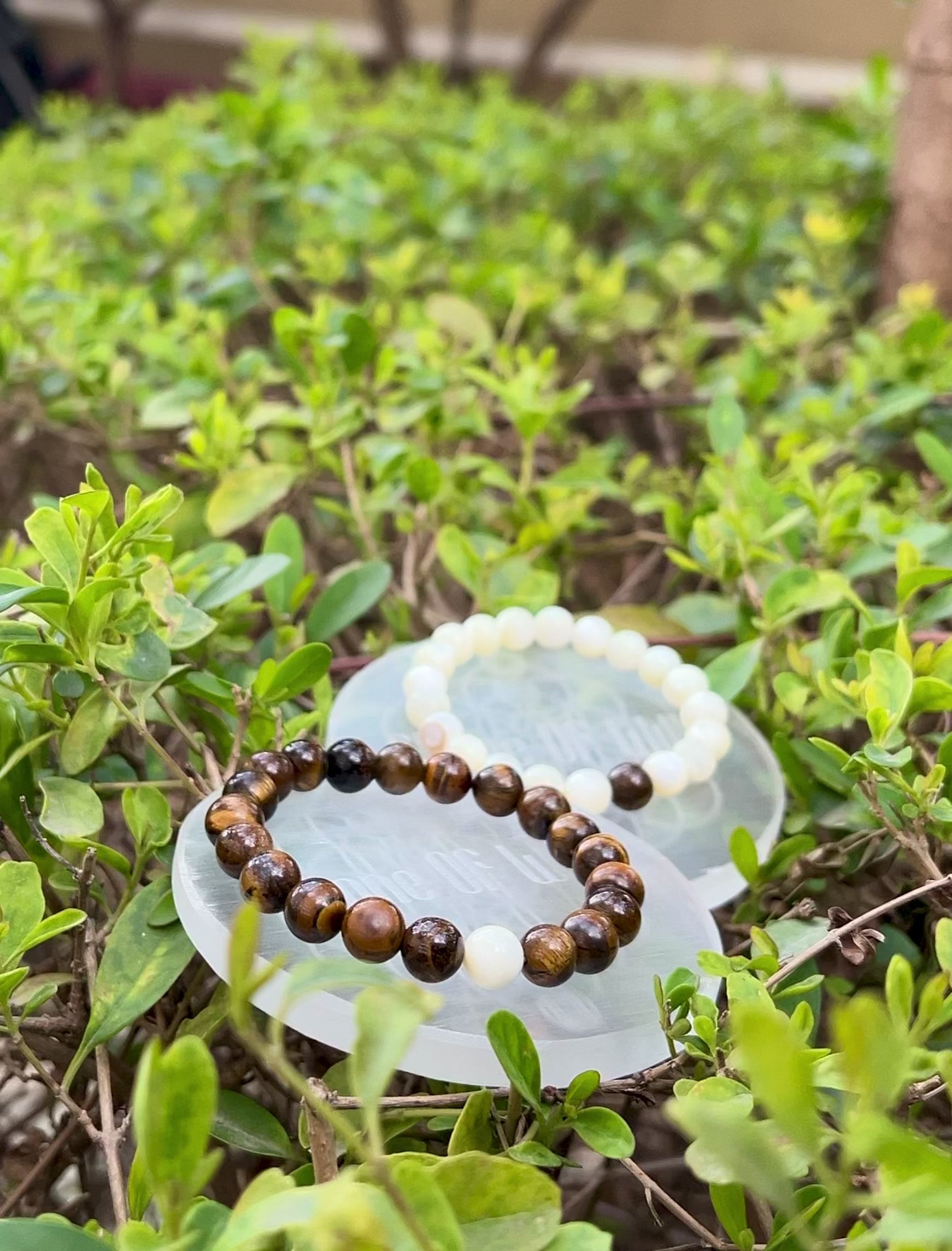For Her- The Mother of Pearl bracelet, centered with one Tiger Eye bead, represents serenity supported by strength. Its soothing, nurturing energy promotes emotional balance and flow, while the Tiger Eye at the center anchors courage, protection, and stability.